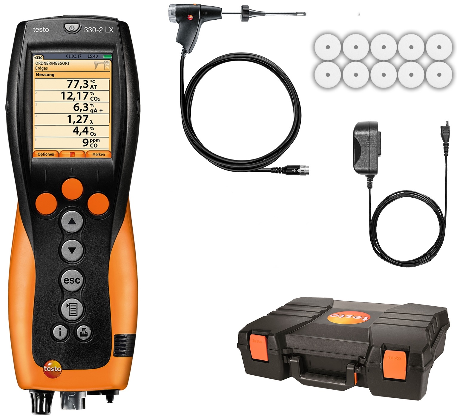 S touto jubilejní sadou jste vybaveni pro nejdůležitější měření týkající se otopných zařízení: analyzátor spalin testo 330-2 LX s certifikátem TÜV se dodává se senzory O2 a CO s kompenzací H2, s modulární odběrovou sondou s certifikátem TÜV, systémovým kufrem a praktickým příslušenstvím.