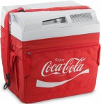 Mobicool Coca-Cola chladicí box 23l, AC/DC 12V 230V termoelektrický 12V přípojka pro zapalovač cigaret a přípojka 230V pro zásuvku, obě přípojky skryty v přihrádce na kabel ve víku Kapacita 23 l nabízí prostor až pro 33 plechovek nebo