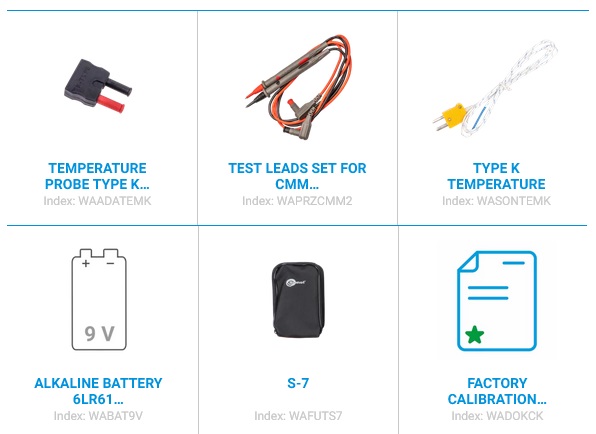 Umožňuje měření napětí a proudu (DC a AC True RMS), odporu, kapacity, frekvence, pracovního cyklu, teploty i test spojitosti a diod