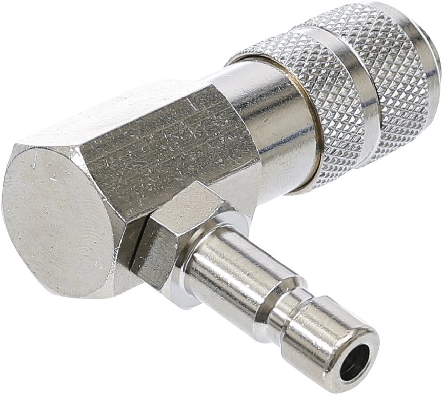 Kompaktní bajonetový adaptér určený pro profesionální práci s chladicími systémy vozidel. Díky zahnutému provedení umožňuje pohodlné připojení i v hůře přístupných místech. V kombinaci s plnicí armaturou je vhodný nejen pro tlakové zkoušky, ale také pro plnění chladicího systému.