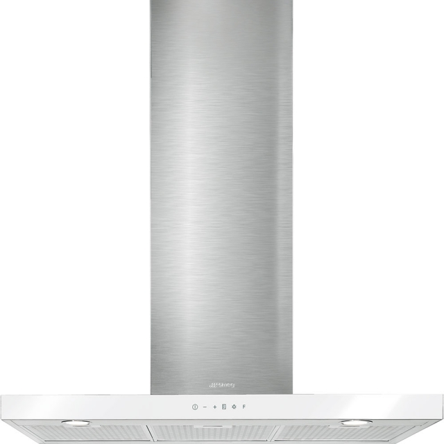 Komínový odsavač par Smeg KS905BXE, neutrální design, energetická třída A, šíře 90 cm, 4 stupně výkonu, LED osvětlení, nerez, panel bílé sklo