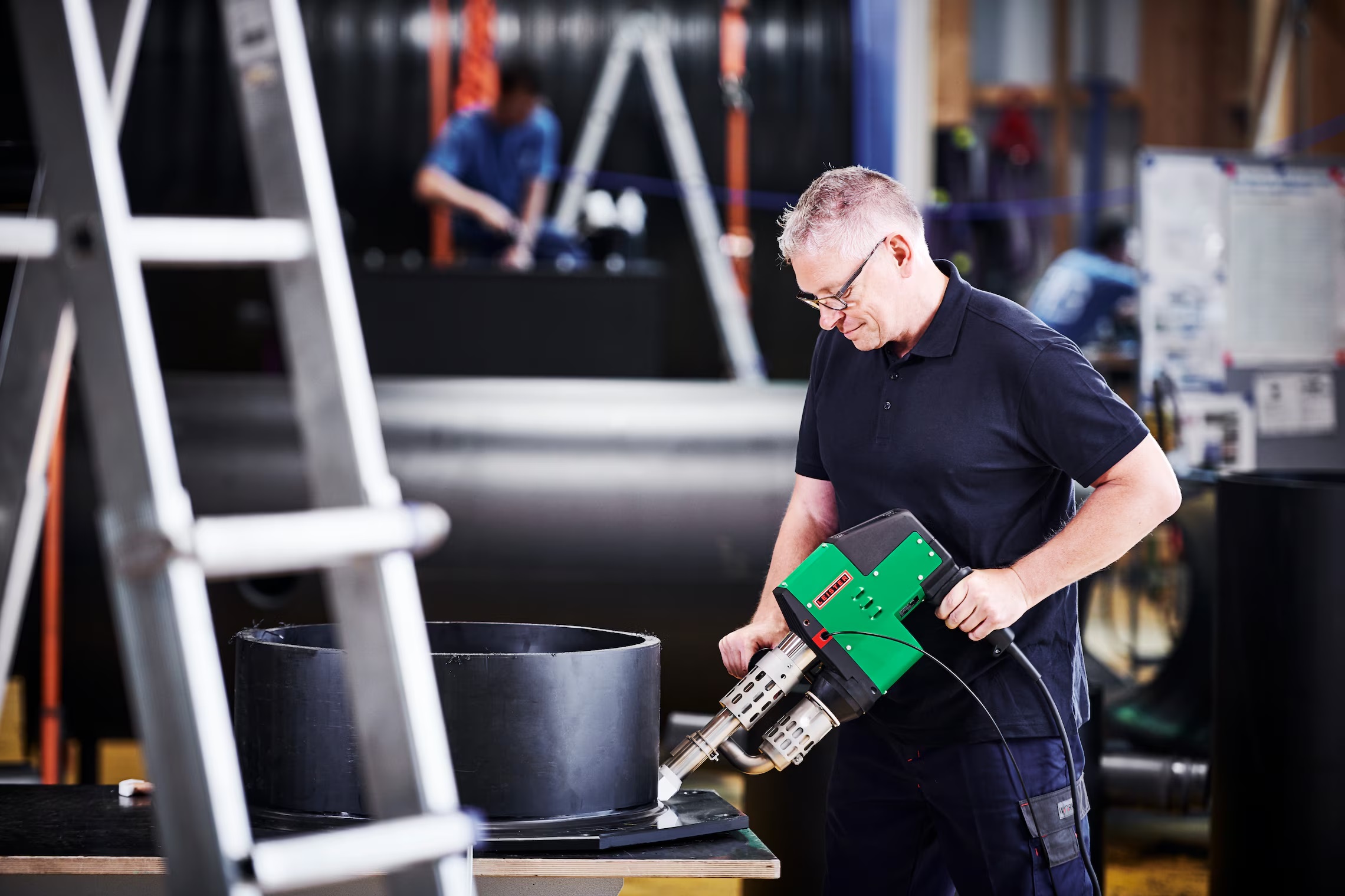 Výkonný ruční extrudér určený pro profesionální svařování plastů v oblasti výroby nádrží, potrubí a konstrukcí