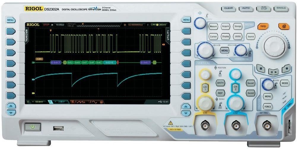 Digitální osciloskop s pamětí DS2302A má 2 vstupní kanály a šířku pásma 300 MHz. Paměť 14 Mpts a rychlost snímání 2 GS/s umožňují přesné zobrazení signálu. Velký 20,3 cm TFT barevný displej umožňuje dobré rozlišení jednotlivých měřicích kanálů a zobrazení více parametrů. Standardním vybavením jsou rozhraní LAN, USB a RS232 stejně jako rozsáhlé matematické funkce a podpora tiskáren PictBridge.