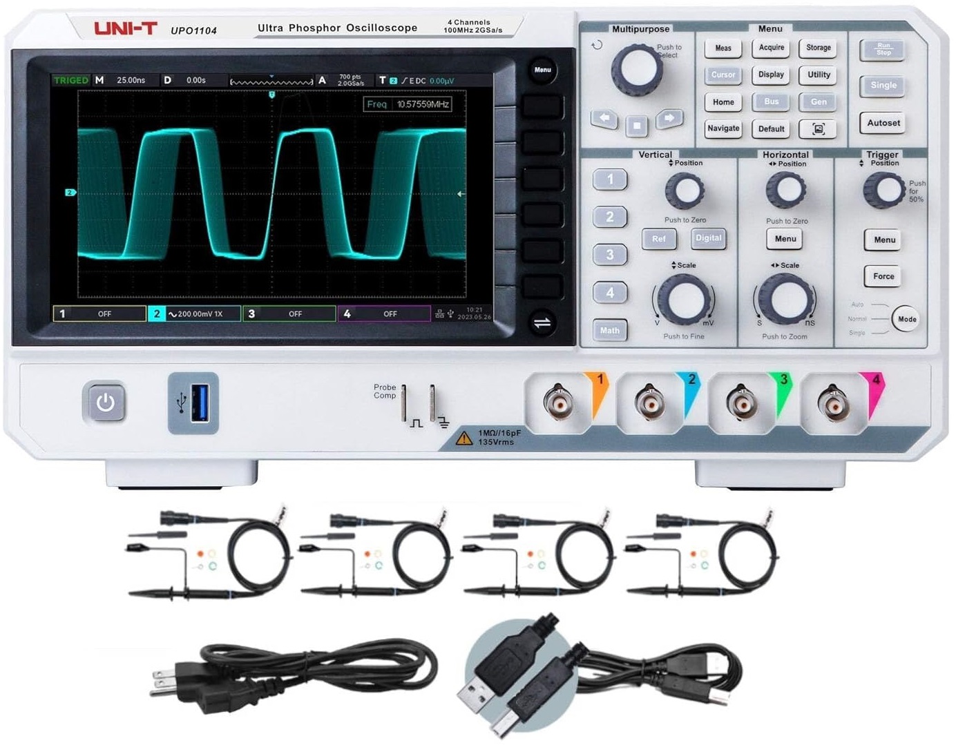 UNI-T UPO1104 digitální fosforový osciloskop, 100 MHz, 4 kanály, 2 GSa/s