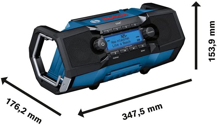 Flexibilní a přenosné digitální rádio GPB 18V-2 SC s vynikajícím zvukem, které lze napájet pomocí 18V baterie nebo ze sítě pomocí adaptéru, je určeno pro příjem rádia a přehrávání hudby prostřednictvím chytrých telefonů. Tento extrémně robustní šikula, který je plně funkční i po pádu z výšky 2m, poskytuje dokonalou zvukovou kulisu pro celodenní práci díky své mimořádné flexibilitě s DAB+, Bluetooth®, příjmem FM a možností AUX. Bezpochyby vás zaujme svým kompaktním designem s rukojeťí i háčkem pro snadnou přepravu a pohodlné skladování a možností ho umístit vertikálně nebo horizontálně. Díky funkci propojení dvou rádií s chytrým telefonem si můžete navíc vychutnat jedinečný stereofonní zvuk. Využijete i v méně vlídných podmínkách díky ochraně proti prachu a stříkající vodě (IP54).
