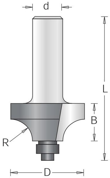 1099165 stopková fréza radiusová fréza s ložiskem R 10/8 SL Dimar