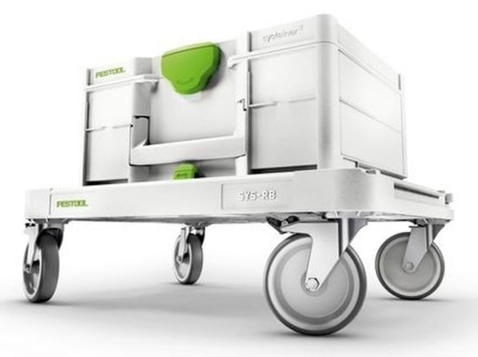 Pojízdný vozík s inteligentní výbavou, všechna čtyři velká kolečka jsou otočná o 360°. Díky tomu se z pojízdného vozíku stává obratný pojízdný podstavec, ideální na stavbu a do dílny. Dvě ze čtyř koleček jsou vybavená aretačními brzdami. Systainer³ a Systainer T-LOC lze díky spojení upevnit pomocí centrálního ovládacího prvku. Navíc je možné na rovné ploše přepravovat a zajistit pomocí otvorů pro upínací popruh další předměty a materiál. Čtyři robustní držadla usnadňují manévrování a umisťování pojízdného vozíku.