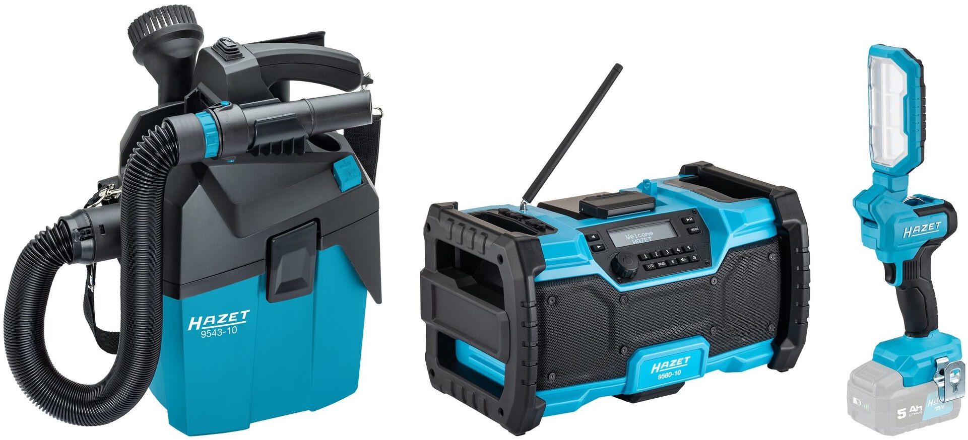 Hazet 9500P-2/3 sada – aku rádio, aku vysavač, pracovní LED světlo, 18 V (bez aku a nabíječky)