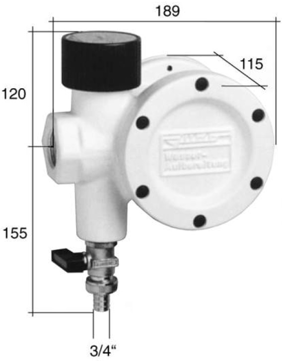 Provedení: Skříň odolná vůči horké vodě z vysoce kvalitní šedé litiny PN 10, závitové připojení podle DIN EN 10226-1, pískované uvnitř a vně a odolné proti korozi potažené plastem, bez průhledových skel, dvě filtrační komory, každá s jedním permanentním filtračním prvkem, filtrační a nosná tkanina z nerezové oceli, vícecestný ventil a ruční kolo pro nastavení provozní a zpětné proplachovací polohy, proplachování filtrovanou vodou, proplachovací ventil.