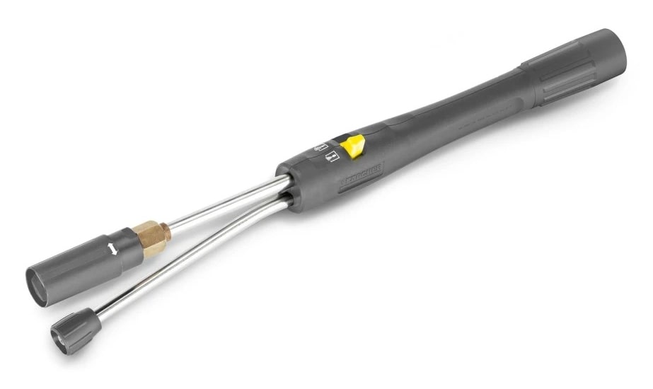 Vysokotlaký pěnovací systém, kompletní k provozuk pro mobilní a stacionární HD /HDS stroje pro čištění a dezinfekci. Dvojitý pracovní nástavec s pěnovací tryskou a přepínáním na vysokotlaký paprsek pro čistý oplach atd. Sady trysek pro různé řady přístrojů (viz sady trysek) je nutné objednat samostatně.