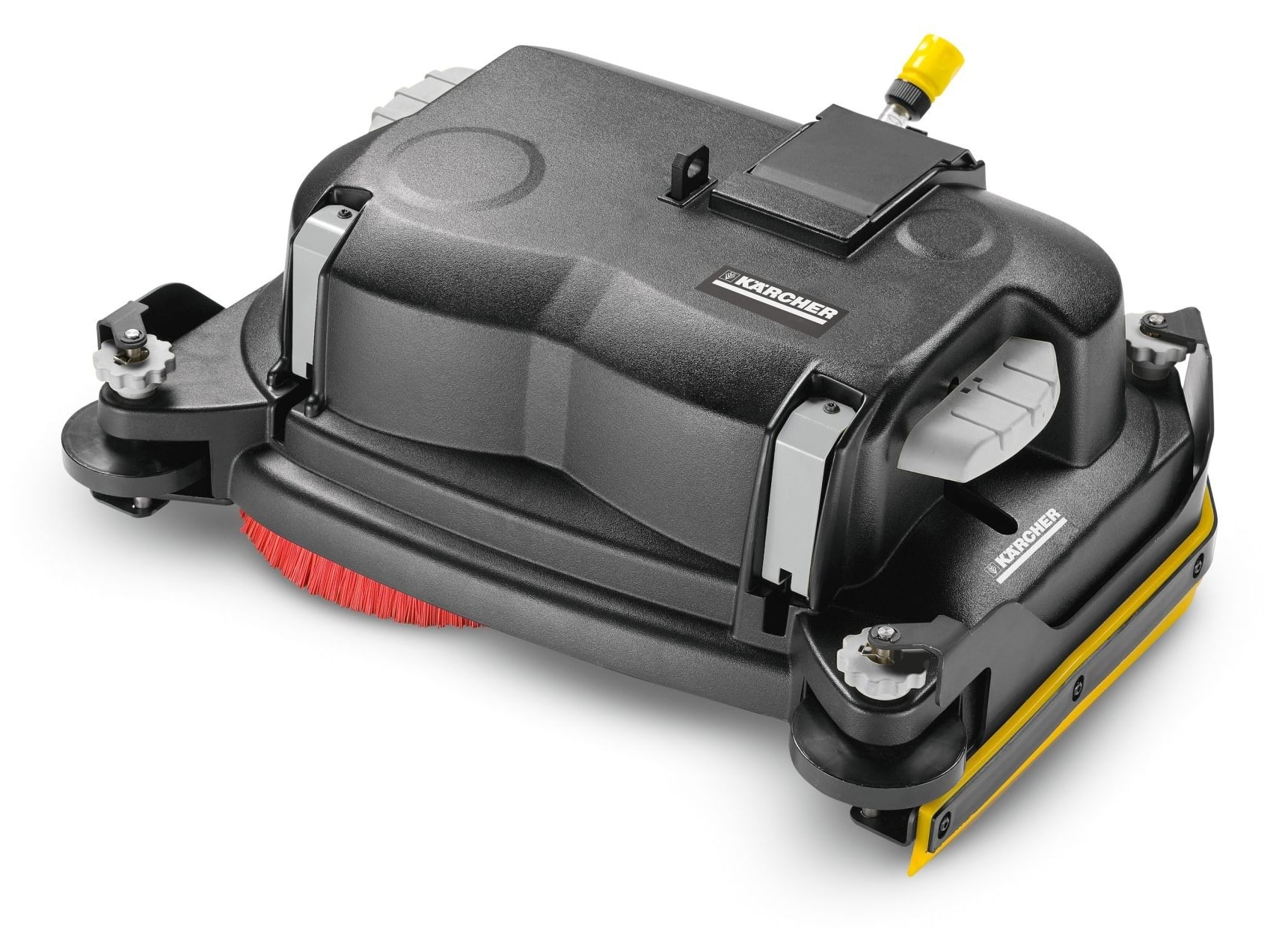 Kartáčová hlava se 2 diskovými kartáči a pracovní šířkou 55 cm. Výměna kartáčů bez nářadí. Postranní zástěrky jsou výškově nastavitelné a drží vodu pod kartáčovou hlavou. Voda je optimálně přiváděna k sací liště, i při jízdě v zatáčkách.