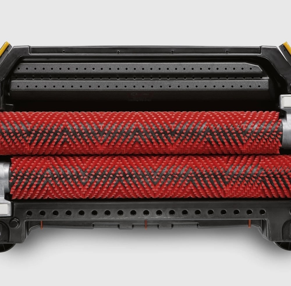 Kartáčová hlava se 2 válcovými kartáči a pracovní šířkou 75 cm, výměna kartáčů bez nářadí. Postranní zástěrky jsou výškově nastavitelné a drží vodu pod kartáčovou hlavou, tím je voda optimálně přiváděna k sací liště, i při jízdě v zatáčkách.