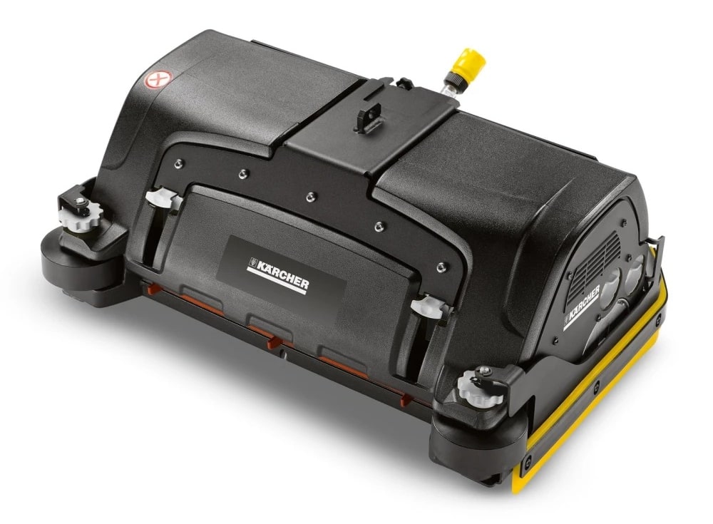 Kartáčová hlava se 2 válcovými kartáči a pracovní šířkou 55 cm. Výměna kartáčů bez nářadí. Postranní zástěrky jsou výškově nastavitelné a drží vodu pod kartáčovou hlavou. Voda je díky tomu optimálně přiváděna k sací liště, i při jízdě v zatáčkách.