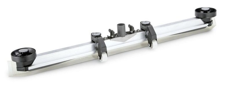 Rovná sací lišta s nastavitelnými opěrnými kolečky, přídavná závaží, které jsou součástí dodávky, zajišťují rovnoměrný přítlak. Rýhované sací stěrky z kvalitního a průhledného polyuretanu odolného vůči olejům s dlouhou životností jsou vhodné pro všechny běžné podlahy, lze je snadno vyměnit a jsou čtyřnásobně použitelné.