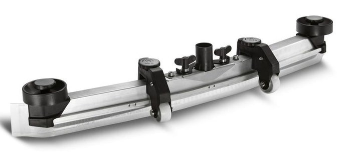 Zahnutá sací lišta s nastavitelnými opěrnými kolečky je dlouhá 940 mm. Přídavná závaží, které jsou součástí dodávky, zajišťují rovnoměrný přítlak. Rýhované sací stěrky z kvalitního a průhledného polyuretanu odolného vůči olejům s dlouhou životností jsou vhodné pro všechny běžné podlahy, lze je snadno vyměnit a jsou čtyřnásobně použitelné.