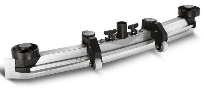 Zahnutá sací lišta s opěrnými kolečky je dlouhá 716 mm. Sací stěrky jsou z průhledného polyuretanu odolného proti olejům, lze je snadno vyměnit.