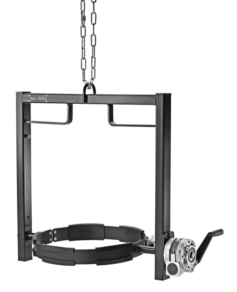 Vyprazdňování jeřábem a vysokozdvižným vozíkem pomocí klikového mechanismu, průměr 452 mm, maximální nosnost 260 kg.