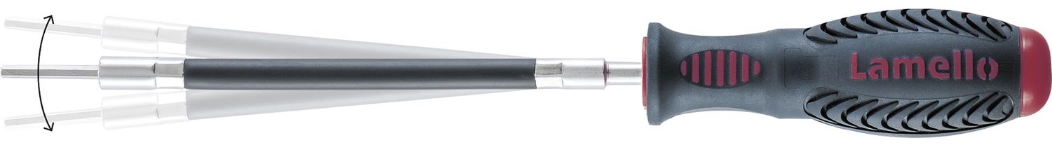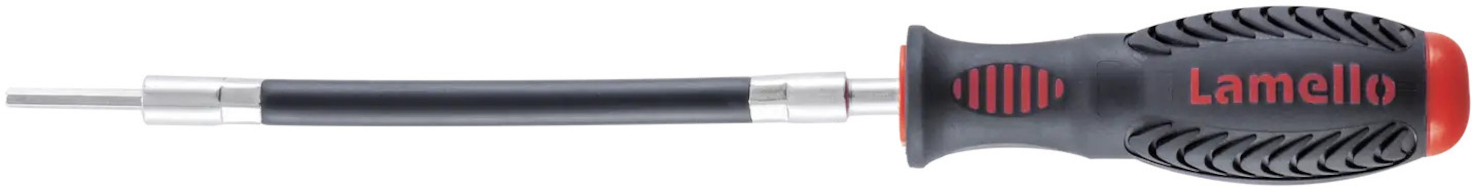 Montážní pomůcka LAMELLO Clamex P s flexibilním krkem a 4mm imbusovým klíčem je ideální pro pohodlnou montáž spojů Clamex i v hůře přístupných místech.