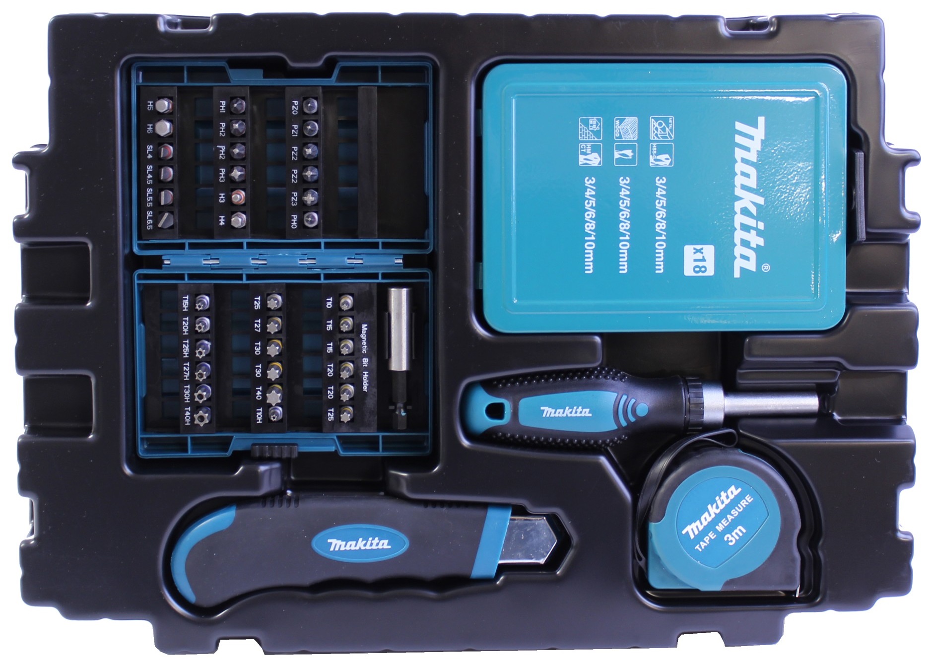 Obsah: souprava vrtáků a bitů Makita 96-dílná, vrtací souprava 18-dílná: