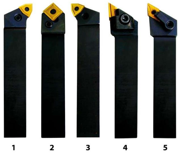 5 různých soustružnických nožů vhodných pro široké spektrum operací.