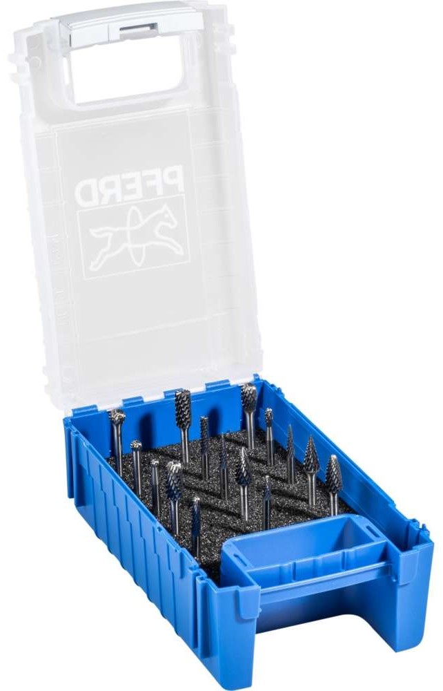 Pferd 1503 Z3 PLUS stopkové frézy z tvrdokovu, stopka 3 mm, 15-dílná sada