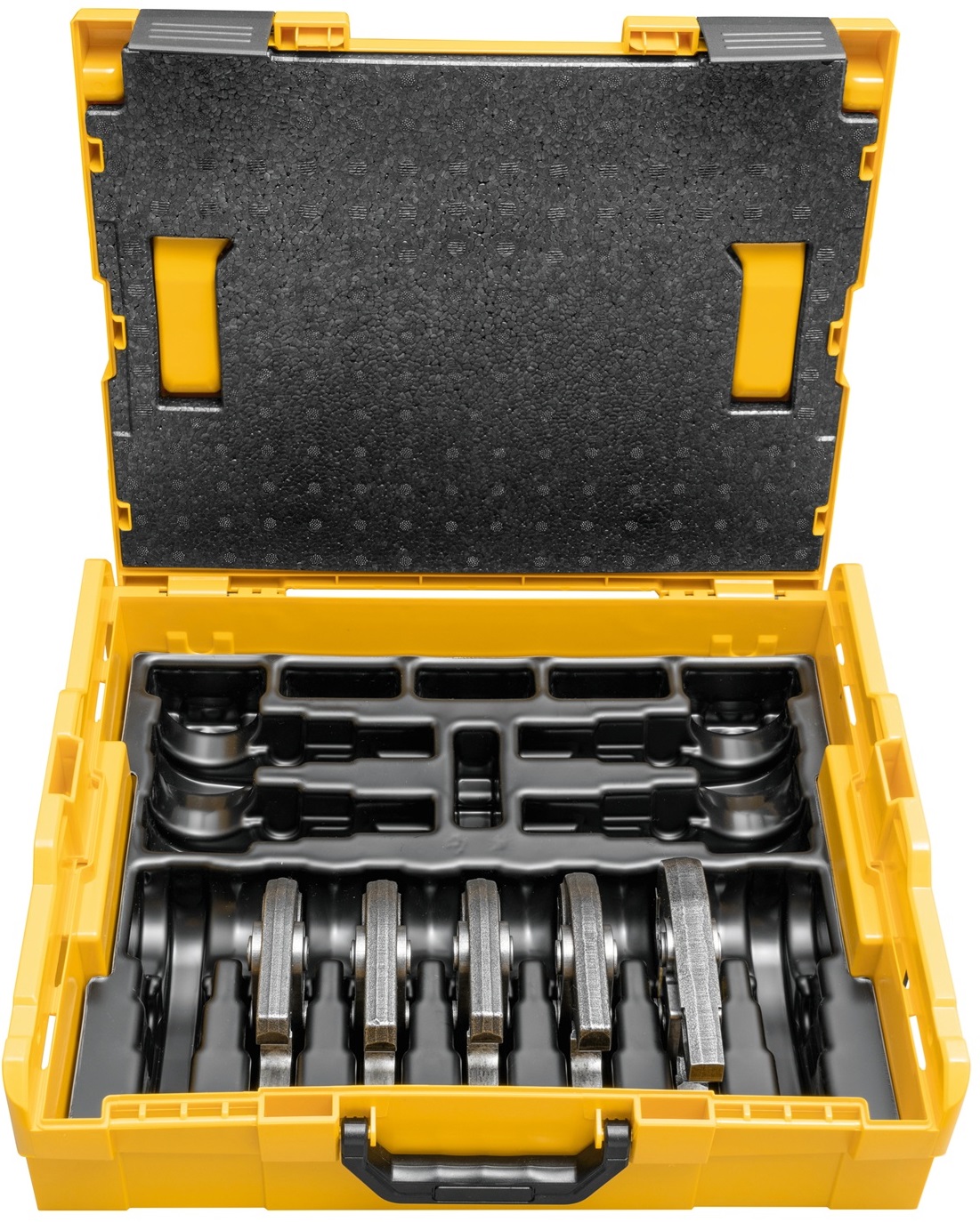Sada obsahuje pět velikostí čelistí pro široké spektrum aplikací a je dodávána v praktickém kufru L-Boxx pro bezpečné uložení a transport