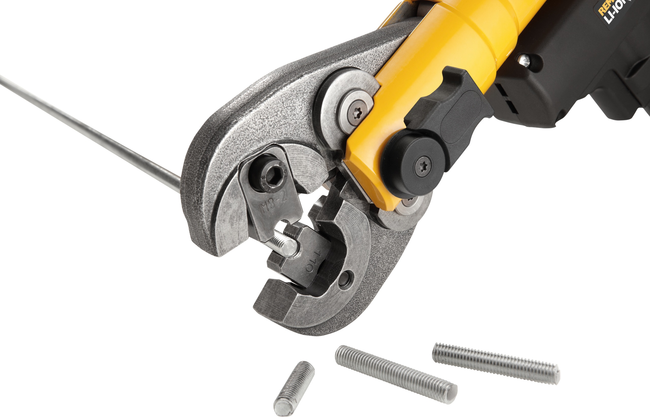 Vysoce zatížitelné dělící kleště Mini pro dělení závitových tyčí M8. Vyrobeno z kované a speciálně kalené oceli pro vysokou pevnost a dlouhou životnost. CNC přesně opracované dělící vložky s profilem závitu zajišťují přesné vedení závitové tyče při dělení. Speciálně tvarované a kalené střihové hrany umožňují čisté dělení bez otřepů. Otočné dělící vložky zajišťují dvojnásobnou životnost nástroje. Závitovou tyč lze po dělení ihned našroubovat do matice nebo trubkové objímky bez další úpravy. Vhodné pro ocel i nerezovou ocel do pevnostní třídy 4.8 (400 N/mm²). Kompatibilní s radiálními lisy REMS Mini-Press 14 V ACC, Mini-Press 22 V ACC a Mini-Press S 22 V ACC i s kompatibilními lisy jiných výrobců.