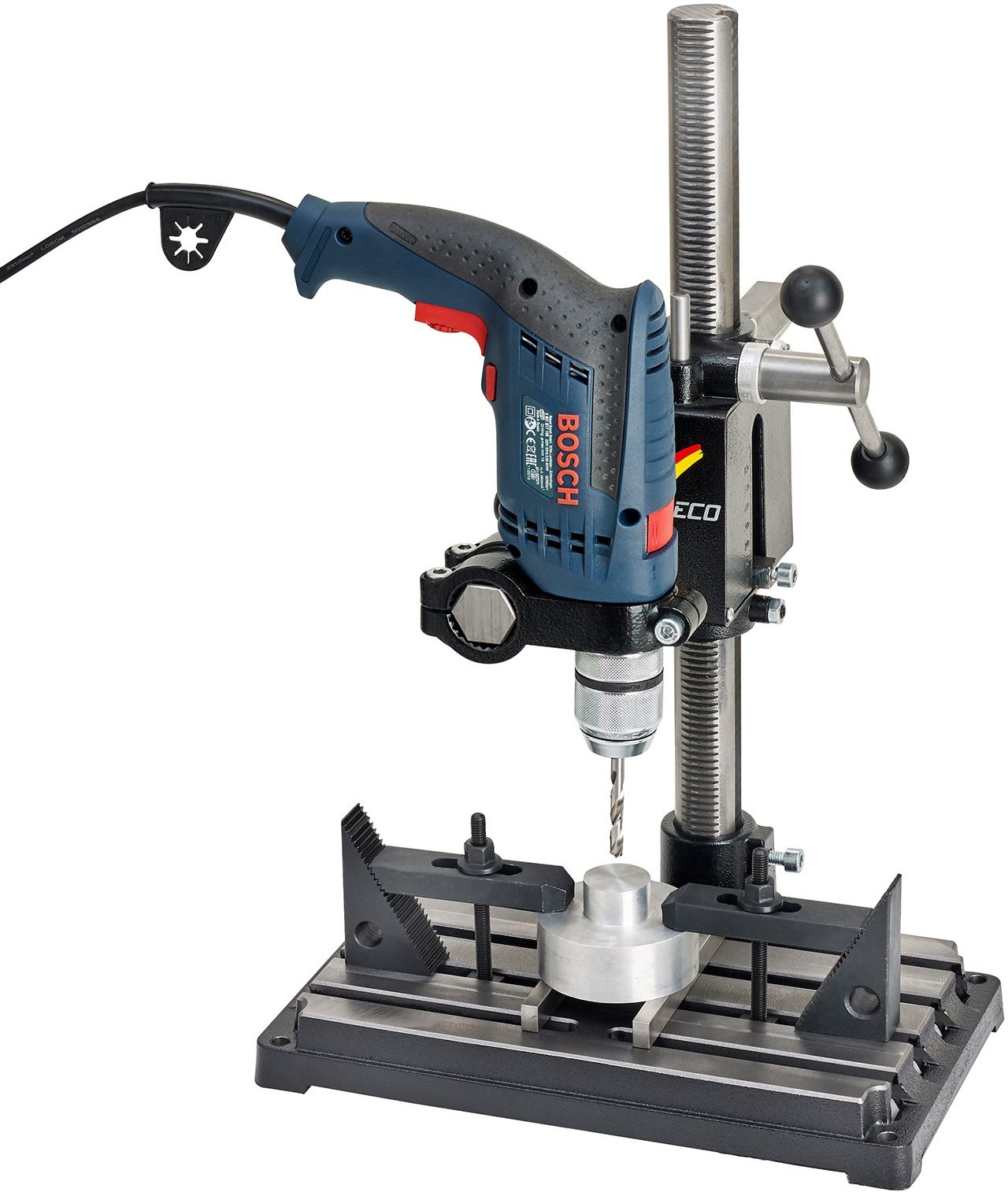 Vertikální zdvih je 55 mm a je omezen vratnou pružinou a rovněž je vybaven dorazem, abyste vždy navrtali přesnou požadovanou hloubku.