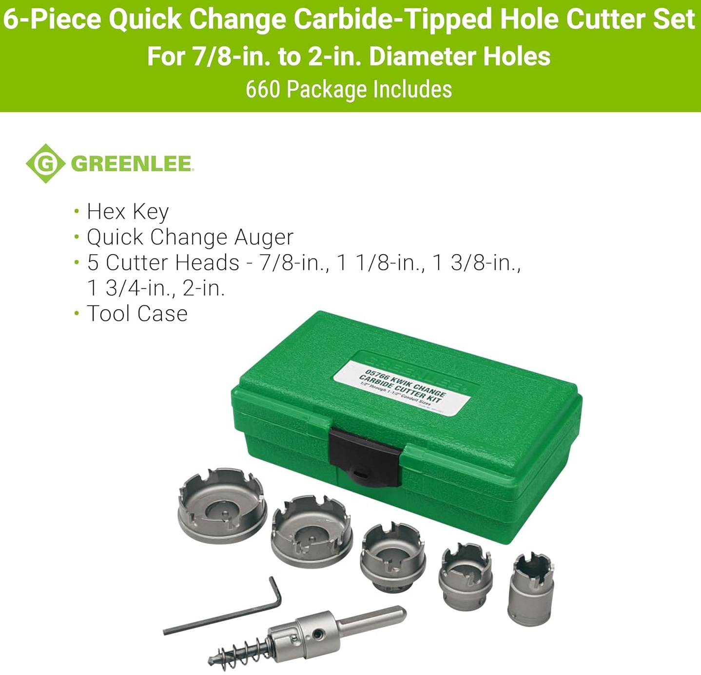 Splátkový prodej - Greenlee 660 sada karbidových děrovek s rychlovýměnným trnem 22-51 mm, 6 dílů