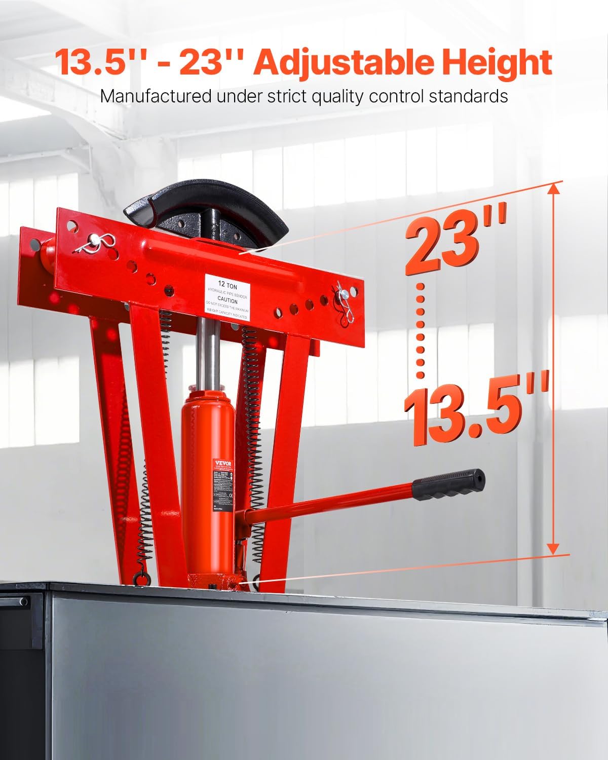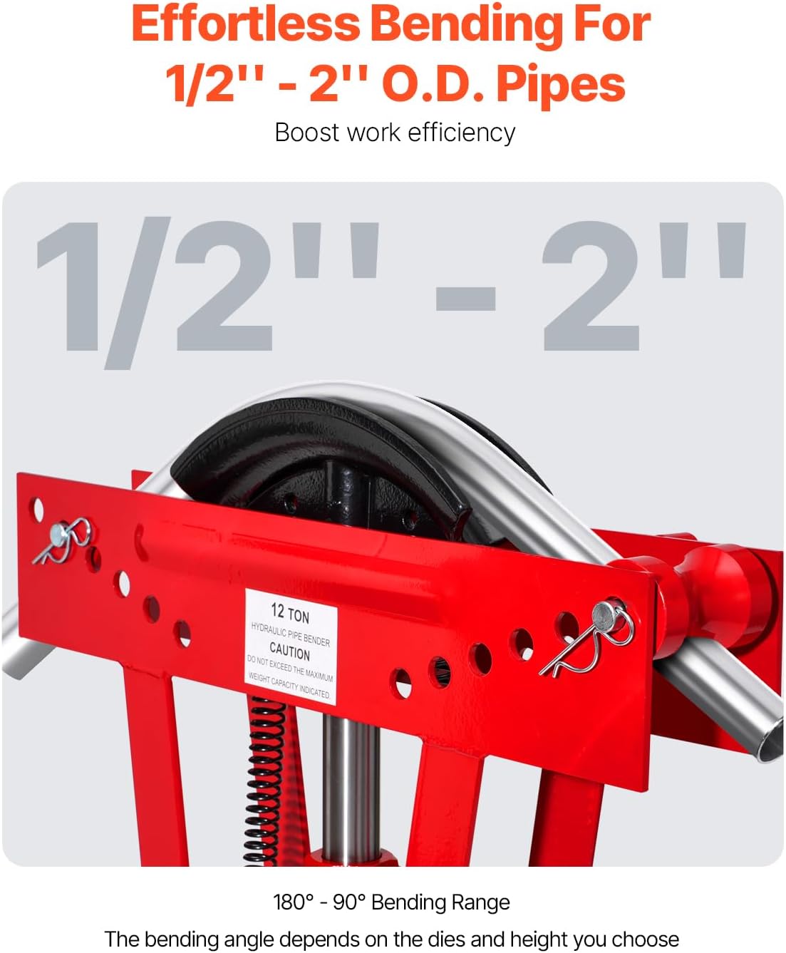Hydraulická ohýbačka trubek VEVOR s lisovací silou 12 t je určena pro přesné ohýbání kovových trubek v rozsahu 1/2–2".