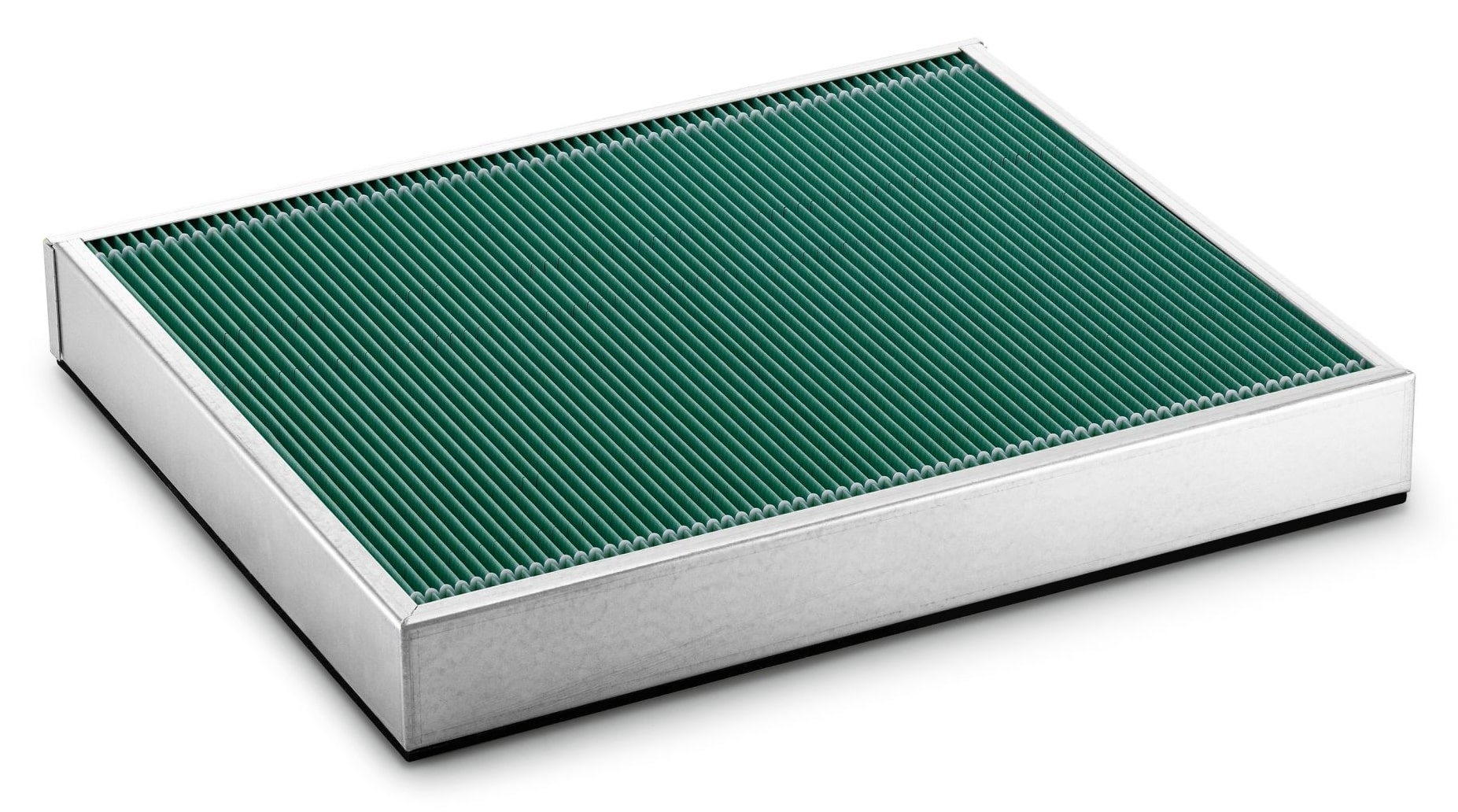 Plochý skládaný filtr se zvýšenou účinností odlučování. Šetří náklady na údržbu a zajišťuje optimální čištění odpadního vzduchu.
