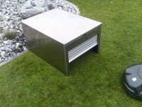The Working Robots Mower-Garage Alu / Color garáž zajišťuje, že robotická sekačka je chráněna optimálně proti větru, počasí a UV