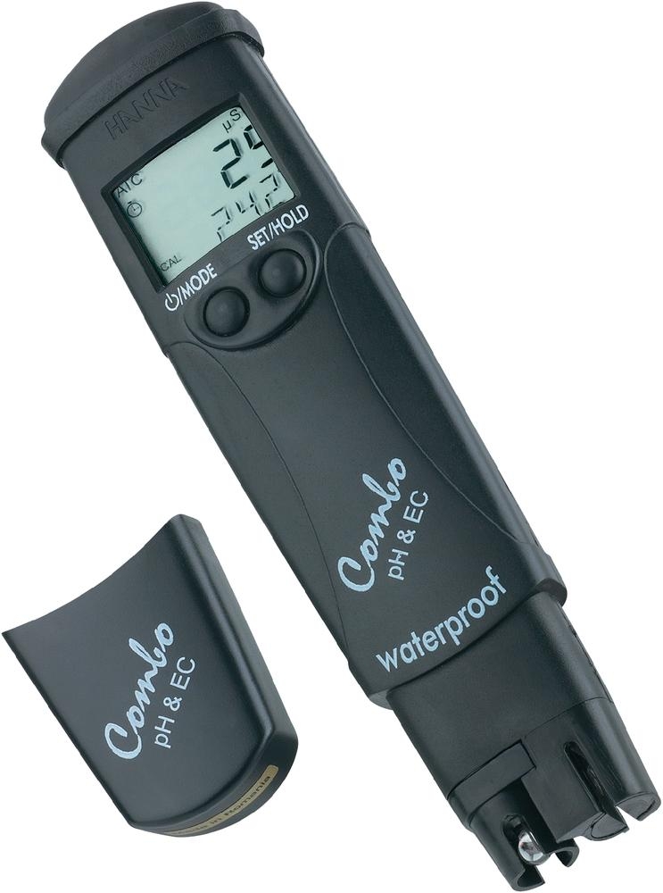 Proveďte snadno ovladatelným, vodotěsným přístrojem Combo měření čtyř různých parametrů: Hodnotu pH, teplotu a dvě různé hodnoty vodivosti zjistíte pouze jedním přístrojem