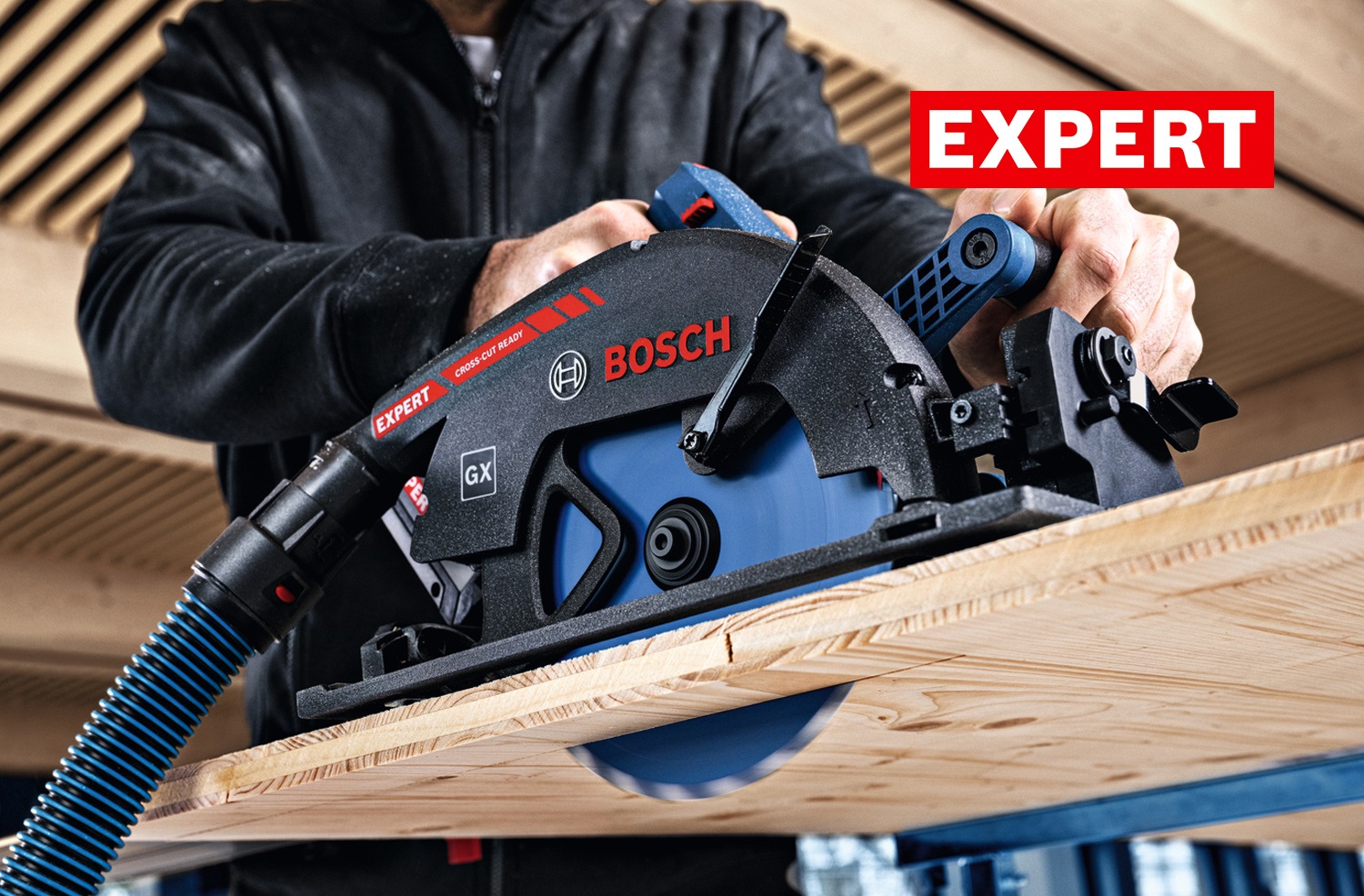 Aku okružní pila BOSCH EXPERT EXKS18V-68GX je špičková 18V okružní pila navržená pro maximální přesnost příčných a úhlových řezů.