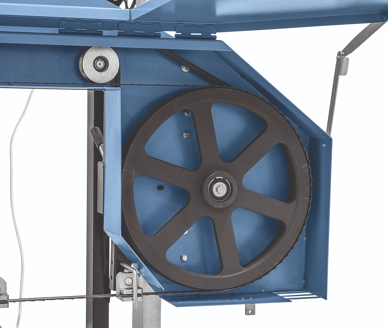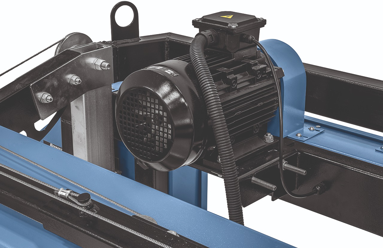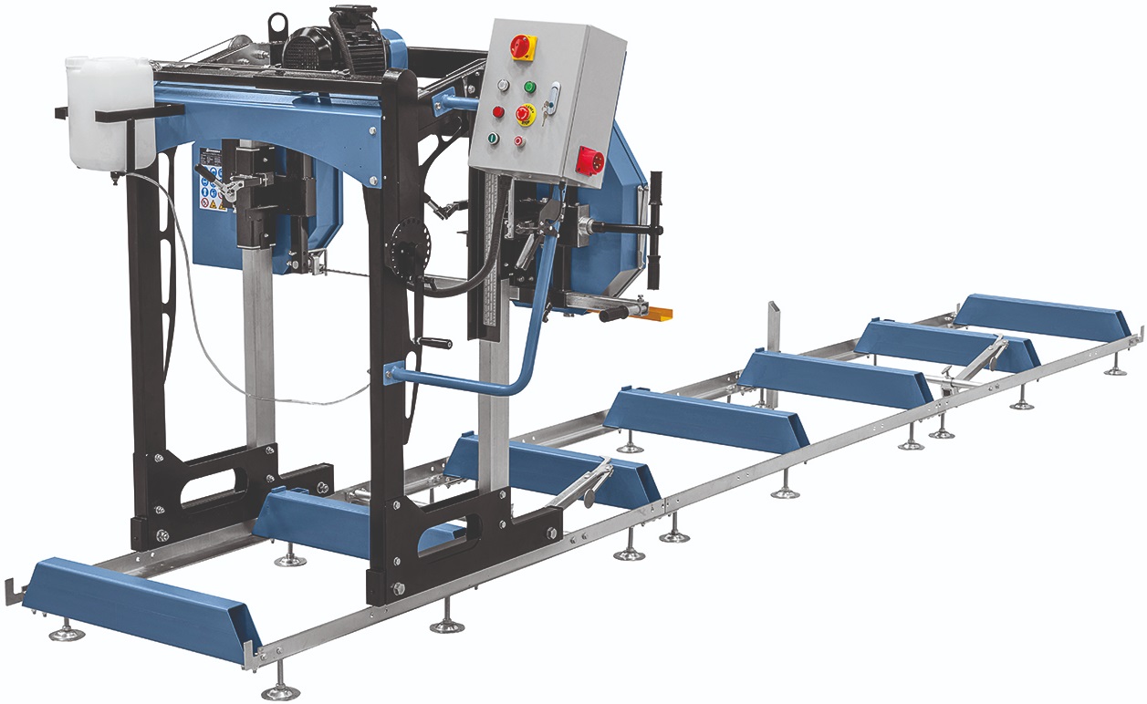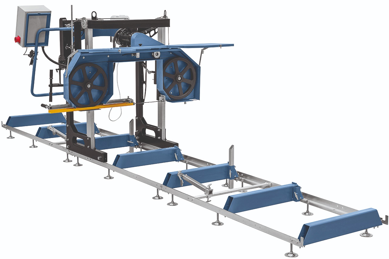 Výkonný elektromotor 5,5 kW pro stabilní a efektivní řezání. Dynamicky vyvážená litinová hnací kola pro klidný chod. Určeno pro řezání měkkého i tvrdého dřeva. Manuální nastavení výšky i posuvu pilové jednotky. Zavěšená a oboustranně vedená pilová jednotka pro přesný řez. Nastavitelné dorazy pro snadné upevnění kmene. Integrovaný systém chlazení a mazání pilového pásu. Možnost prodloužení lože pro neomezenou délku řezu. Standardní délka dráhy 5 m. Vhodné pro stacionární použití