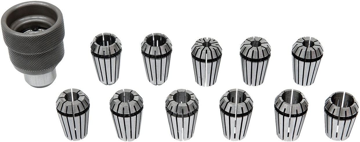 11x kleština ER20 (4–14 mm, odstupňování po 1 mm)