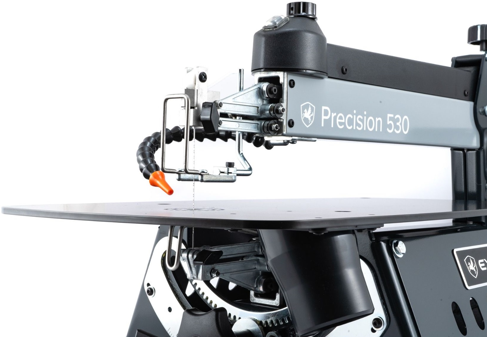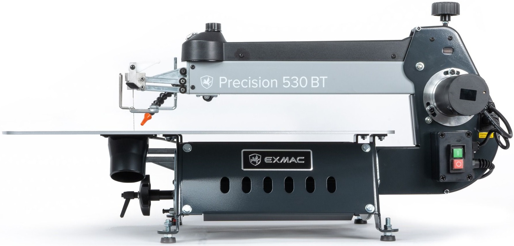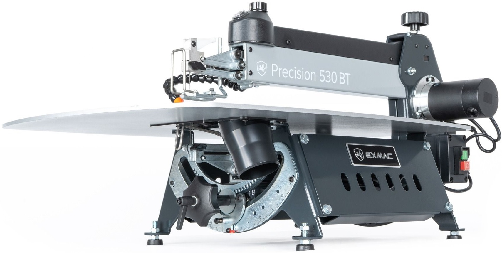 EXMAC PRECISION 530BT „Big Table” je robustní, profesionální lupínková pila vybavená mimořádně velkým pracovním stolem, který poskytuje maximální stabilitu při řezání dlouhých a rozměrných obrobků. Masivní konstrukce, vysoká hmotnost a precizně zpracované mechanické části zajišťují špičkovou přesnost řezu v široké škále materiálů – od dřeva, přes syntetické materiály až po neželezné kovy. Model je ideální pro náročné domácí uživatele i profesionály.