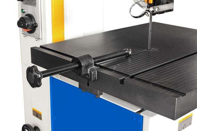 Výškové nastavení vedení pilového pásu ručním kolem pro jednoduché přizpůsobení