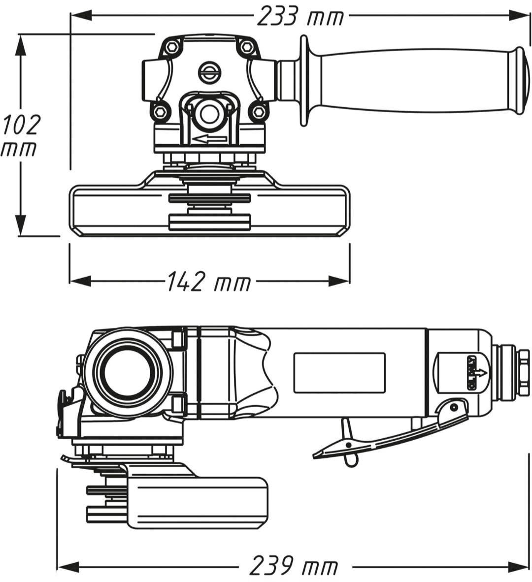 Výkonná pneumatická úhlová bruska pro kotouče 125 x 22 mm