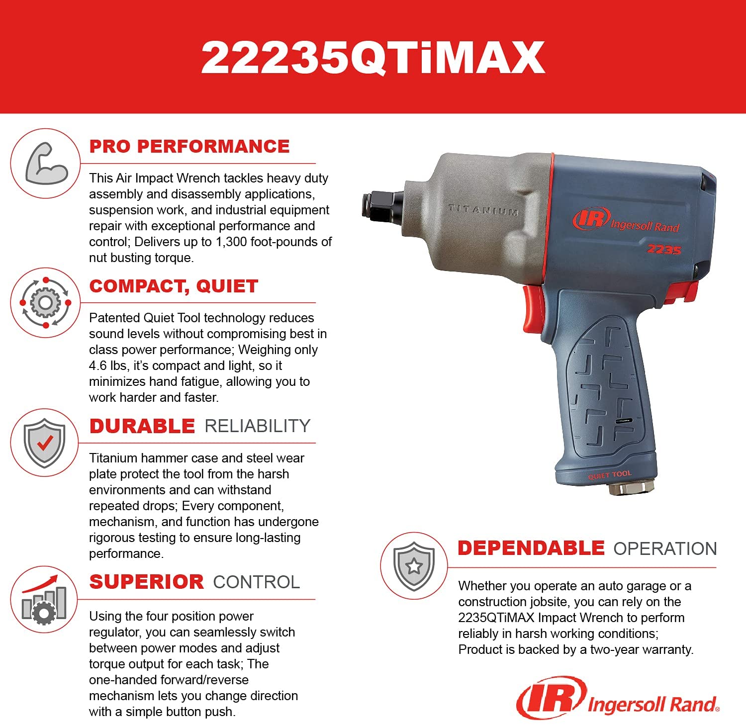 1x Ingersoll Rand 2235QTiMAX pneumatický rázový utahovák 1/2"