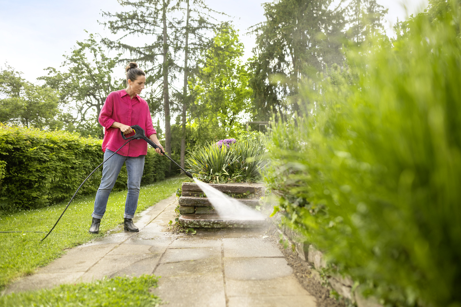 Díky výkonné rotační trysce Entry odstraní rotační tryska i silně ulpívající nečistoty během chvíle. Rotující bodový paprsek odstraní bez námahy atmosferické nečistoty a pomůže tak rychle obnovit lesk například mechem porostlých a povětrnostním vlivům vystavených povrchů.