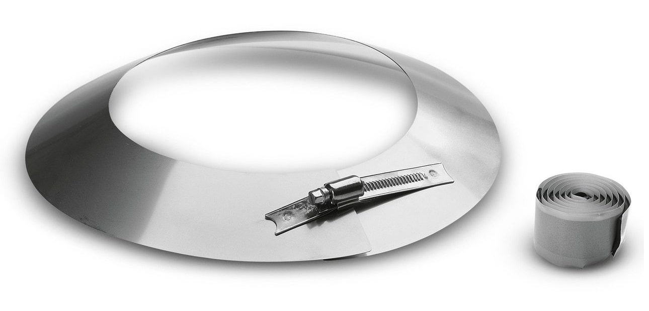 Kryt proti dešti/nástěnná rozeta na kouřovod s izolační páskou pro vysokotlaké čističe.