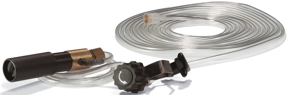 Pěnovací sada, pěnová tryska je ideální pro použití v sanitárních oblastech a potravinářském průmyslu a všude tam, kde je nutná dlouhá doba aplikace. Připojuje se k trysce (nahrazuje vysokotlakou trysku). K dávkovanému nanášení pěnovacího prostředku v sanitární a potravinářské oblasti, popř. tam, kde je nutná dlouhá doba působení, montáž na pracovní nástavec namísto VT trysky.