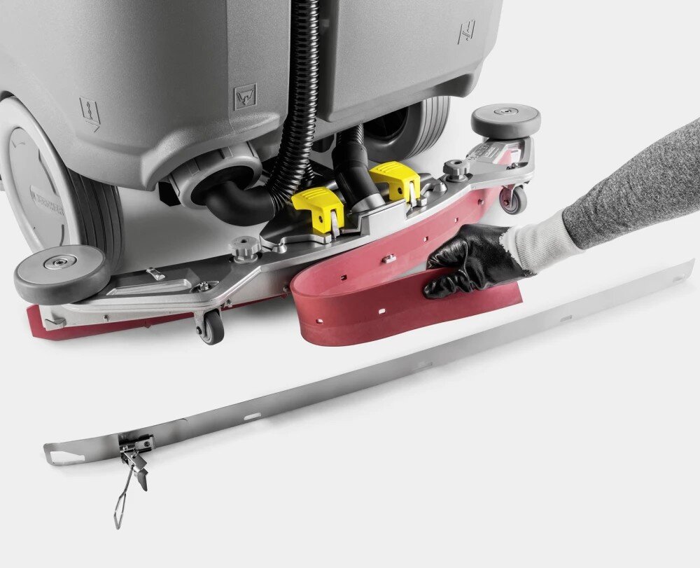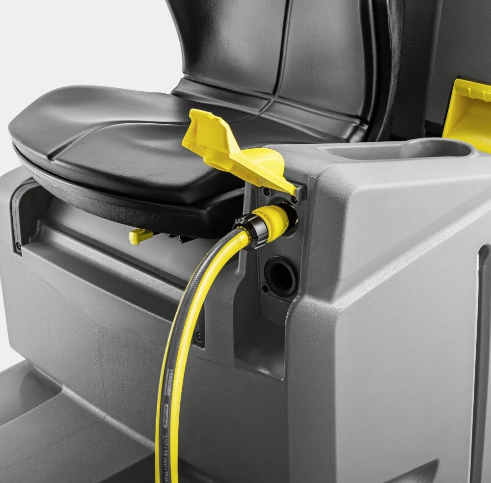 B 110 R Bp Pack s pojezdem disponuje rozsáhlým vybavením s výbornými čisticími výsledky. Je to díky četným inovacím, kterými disponuje, jako je funkce Auto-fill pro časově úsporné plnění nádrže na čerstvou vodu, systém proplachování nádrže pro rychlé čištění nádrže na špinavou vodu, dávkování vody, které se přizpůsobuje rychlosti a systém dávkování detergentu DOSE. Dlouhé čisticí operace a plošný výkon 5 100 m 2 za hodinu umožňuje kombinace standardní 160 Ah lithium-iontové baterie, 110litrové nádrže a hlavy kotoučového kartáče s pracovní šířkou 75 cm, nainstalovaný boční mycí kartáč šetřící čas a náklady o dalších 10 centimetrů, což umožňuje čištění až po okraje, v některých případech dokonce i pod policemi. Díky integrované nabíječce baterií je kdykoli možné mezinabíjení odolné baterie, která má zhruba čtyřikrát delší životnost než olověné baterie. Působivý celkový design završuje systém KIK pro individuální přiřazení přístupových práv a snadné ovládání s přepínačem EASY Operation a barevným displejem.