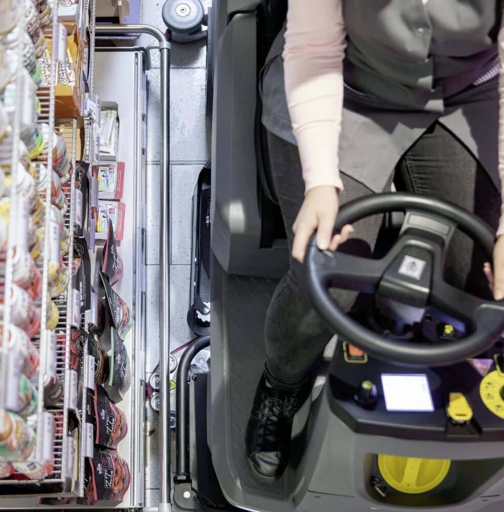 Umožňuje čištění až ke krajům stěn nebo regálů, vychýlí se u překážek pod stroj a zamezí tak poškození, úspora nákladů zamezením manuálního následného čištění v okrajových částech
