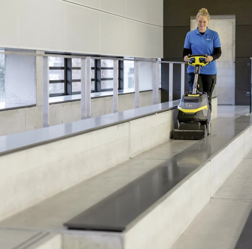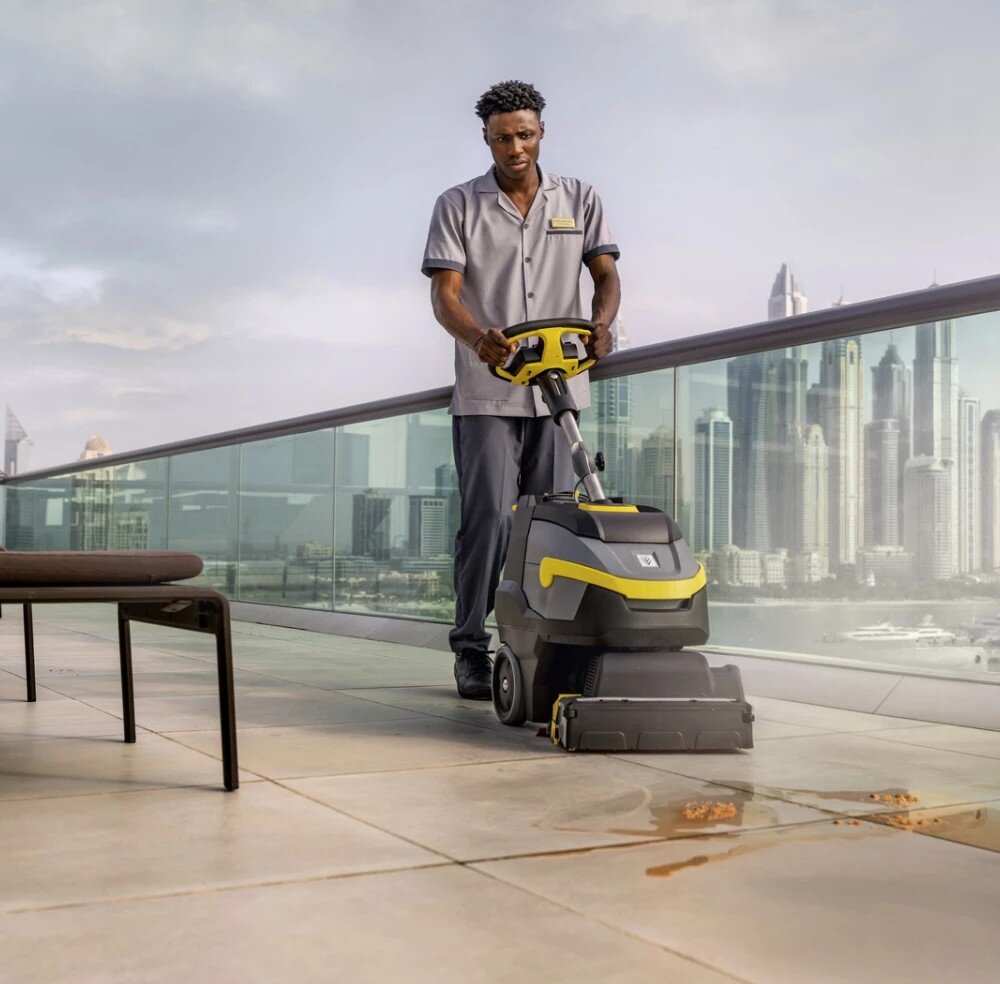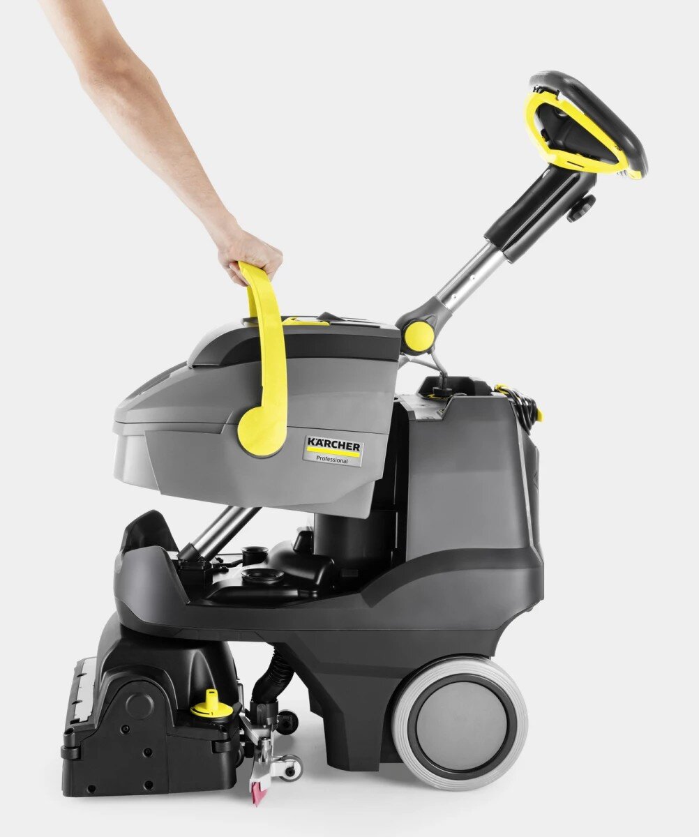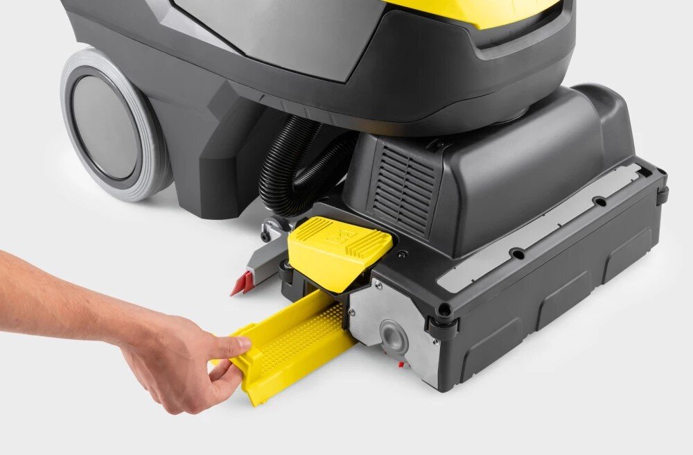 Limitovaná edice černého bateriového podlahového mycího stroje BR 35/12 C Bp Pack Go!Further, vyrobeného z 38 % recyklovaného plastu¹⁾ a vybaveného exkluzivním příslušenstvím, je ideálním řešením pro efektivní čištění malých a zařízených prostor. Čistí dopředu i dozadu a díky nízké hmotnosti se snadno přepravuje a je vhodný pro použití na schodech. Otočná válcová kartáčová hlava s technologií KART (Kärcher Advanced Response Technology) umožňuje práci v těsných zatáčkách, čímž zajišťuje maximální manévrovatelnost a agilitu. Výkonná a dlouhotrvající lithium-iontová baterie umožňuje dlouhou dobu provozu, je bezúdržbová, rychle se dobíjí a má až třikrát delší životnost než běžné olověné baterie. Pro další zvýšení účinnosti lze stisknutím tlačítka aktivovat režim eco!efficiency. Ten snižuje spotřebu energie, prodlužuje dobu provozu baterie a snižuje hlučnost provozu přibližně o 40 procent, což umožňuje práci i v hlukově citlivých prostorách.