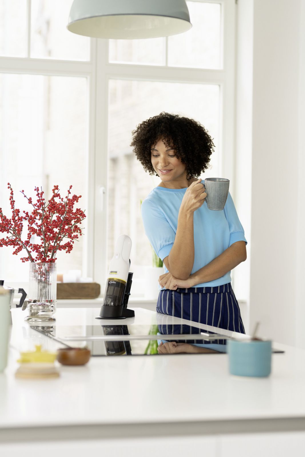 Výkonný každodenní pomocník: akumulátorový ruční vysavač CVH 3 Plus účinně odstraňuje všechny druhy nečistot, jako jsou vlasy, drobky a prach, odkudkoli a bez zanechání stopy. Navíc omyvatelný dvoustupňový filtrační systém obsahující jemnou ocelovou síťku na hrubé nečistoty a vlasy a následný HEPA filtr (EN 1822:1998) zajišťuje extra čistotu odpadního vzduchu. Další výhody, vysoký sací výkon a delší životnost díky k tichému motoru BLDC, kompaktnímu a lehkému designu, dvěma různým úrovním sání s výdrží baterie až 20 minut a pohodlnou nabíjecí stanici včetně uložení příslušenství.