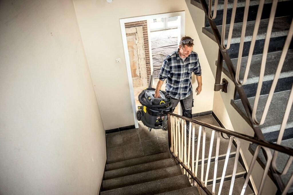 Kompaktní vysavač pro vysávání mokrých a suchých nečistot 30/1 Tact Te M bezpečně a spolehlivě odstraní jemný prach pronikající do plic třídy M. Na stavbách a v dílnách vzniká každý den nebezpečný prach všeho druhu, který částečně proniká až do plic. Pomocí svého nového plně automatického čištění filtru odstraní náš kompaktní vysavač doposud nedostižné množství jemného prachu při současně garantované efektivnosti filtrace 99,9 procent. Přitom jsou čištění filtru a sací výkon neustále sledovány a upravovány elektronikou řízenou senzory. Díky své integrované zásuvce na nářadí se spínací automatikou a kompletnímu antistatickému systému (včetně vodivého příslušenství) je vysavač zvlášť vhodný pro odsávání prachu přímo u elektrického nářadí. Prach usazený na podlaze nebo strojích lze s nově vyvinutým příslušenstvím, které je bezpečně uloženo na vysavači, bez velké námahy a zcela vysávat do robustní nádoby o objemu 30 litrů s kovovými kolečky a nárazníkem.