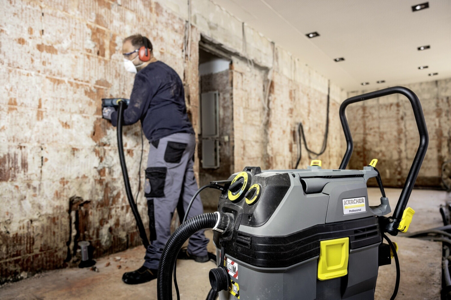 Vyvinuto pro velké množství nebezpečného jemného prachu třídy M: velký a mobilní vysavač pro vysávání mokrých a suchých nečistot 50/1 Tact Te M s nádobou o objemu 50 litrů a držadlem. Díky novému plně automatickému čištění filtru zvládne náš vysavač pro vysávání mokrých a suchých nečistot 50/1 Tact Te M i hodně velké množství jemného prachu při současně garantované efektivnosti filtrace 99,9 procent. Pomocí senzory řízené elektronice se vysavač vždy postará o optimální čištění filtru a tím konstantně vysoký sací výkon. V souhře s velkou a robustní nádobou o objemu 50 litrů s kovovými vodicími kolečky a nastavitelným držadlem zvládne vysavač velké množství nebezpečného prachu třídy M, i hrubých nečistot a kapalin. Vysavač NT 50/1 Tact Te M je vybavený zásuvkou pro připojení nářadí se spínací automatikou a kompletním antistatickým systémem včetně vodivého příslušenství. Je tudíž především vhodný pro přímé odsávání u elektrického nářadí, které produkuje mnoho jemného prachu. Prach, který se již usadil na zemi nebo na strojích, bezpečně vysaje zcela nově vyvinutou sadou příslušenství skládající se z 4metrové sací hadice, sacích trubek z ušlechtilé oceli a široké podlahové hubice. Veškeré příslušenství je díky promyšleným řešením bezpečně uloženo na vysavači.