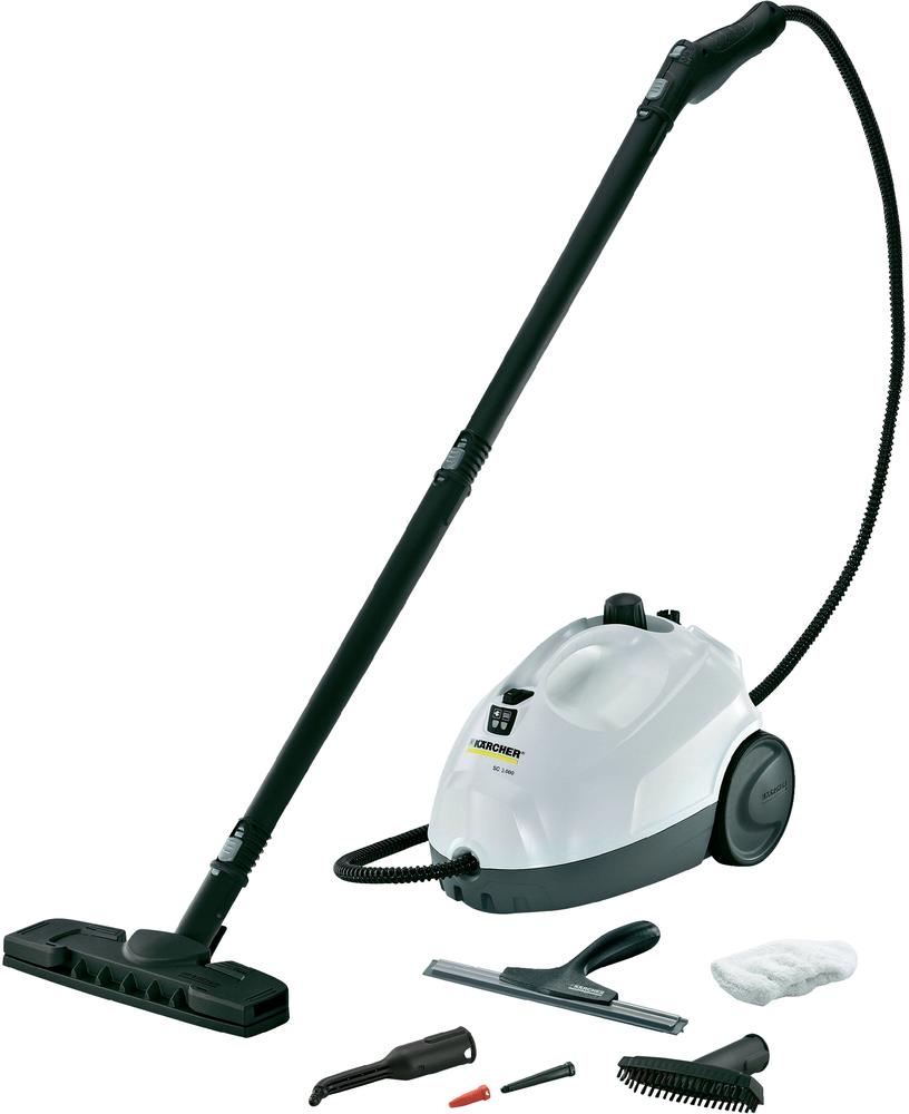 Kompaktní parní čistič Kärcher s osvědčenou kvalitou nabízí mnoho praktických detailů vybavení: např. snadno pochopitelné ovládání, 1 l objem kotle, uložení příslušenství na přístroji, parkovací polohu, bezpečnostní uzávěr a velká kola pro snadnou ovladatelnost